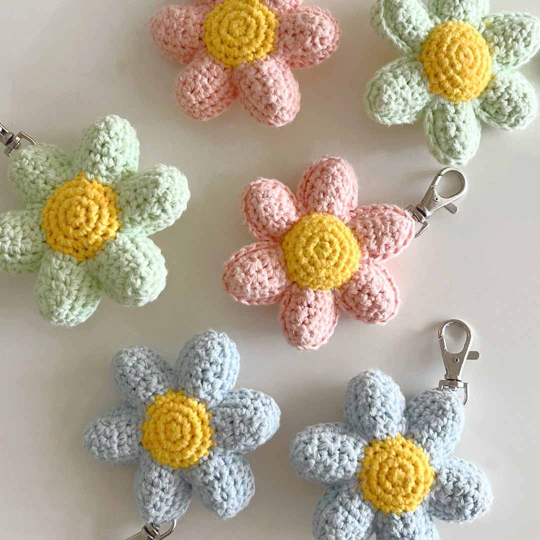 Llavero de crochet hecho a mano, disponible en 3 colores.